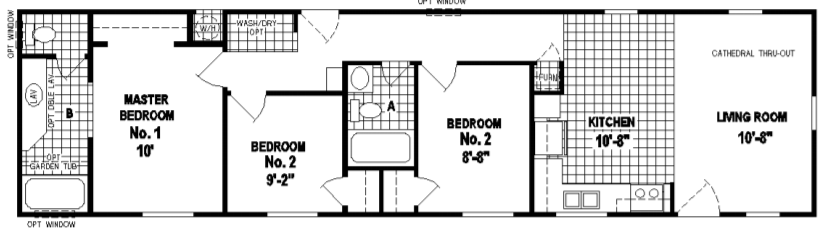 The K206 is one of our smaller house plans. This plan offers three-bedrooms and two-bathrooms in an open-concept design. Although the home is under 1000 square feet the expert design makes it seem larger than it is. You might consider this home to downsize, as a vacation home, or as an affordable way to add an accessory dwelling unit into your backyard as housing for family members, friends, students, or renters. This home belongs to the Palm Haven series of homes. This series has drywall throughout, hardwood cabinetry, energy efficient windows, faux wood blinds, and much more.