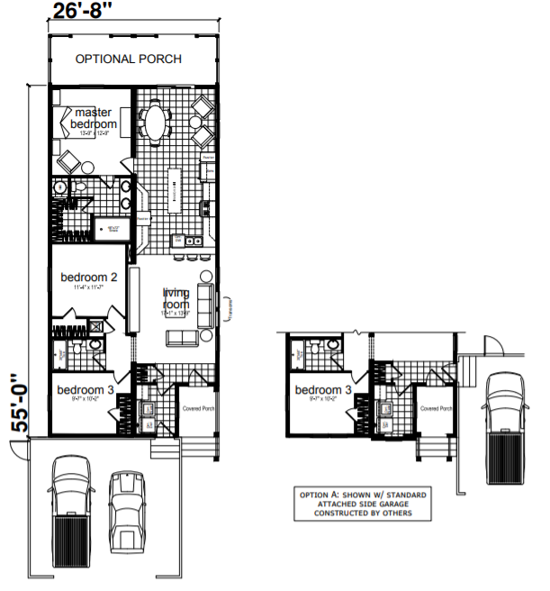 The Genesis series from Skyline homes offers a beautiful residential interior design and exterior elevation. This 1,416 square foot 3 bedrooms and 2 baths design makes this floor plan perfect for more narrow city lots! The covered front porch and optional back porch provide outdoor living spaces which is perfect for Southern California.