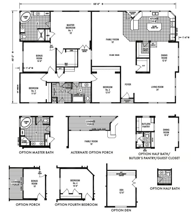 B365CT This 2708 square foot three-bedroom, two-bath, entertaining style home features a chef-inspired kitchen, spacious living areas, tons of storage space, wide hallways, and is adaptable to an attached garage off the utility room. The many kitchen windows and vaulted ceilings offer an abundance of natural light. Additionally, this home offers multiple pre-engineered floorplan modifications – you can add a half bath, covered porches, a butler’s pantry, a fourth bedroom, or change the master bath. The Custom Villa series has standard hardwood cabinetry, most interior doors are 36”, radius drywall corners, side eaves and overhangs, 2x6 exterior window trim and exterior shutter treatments to the windows on the front door side and hitch end.