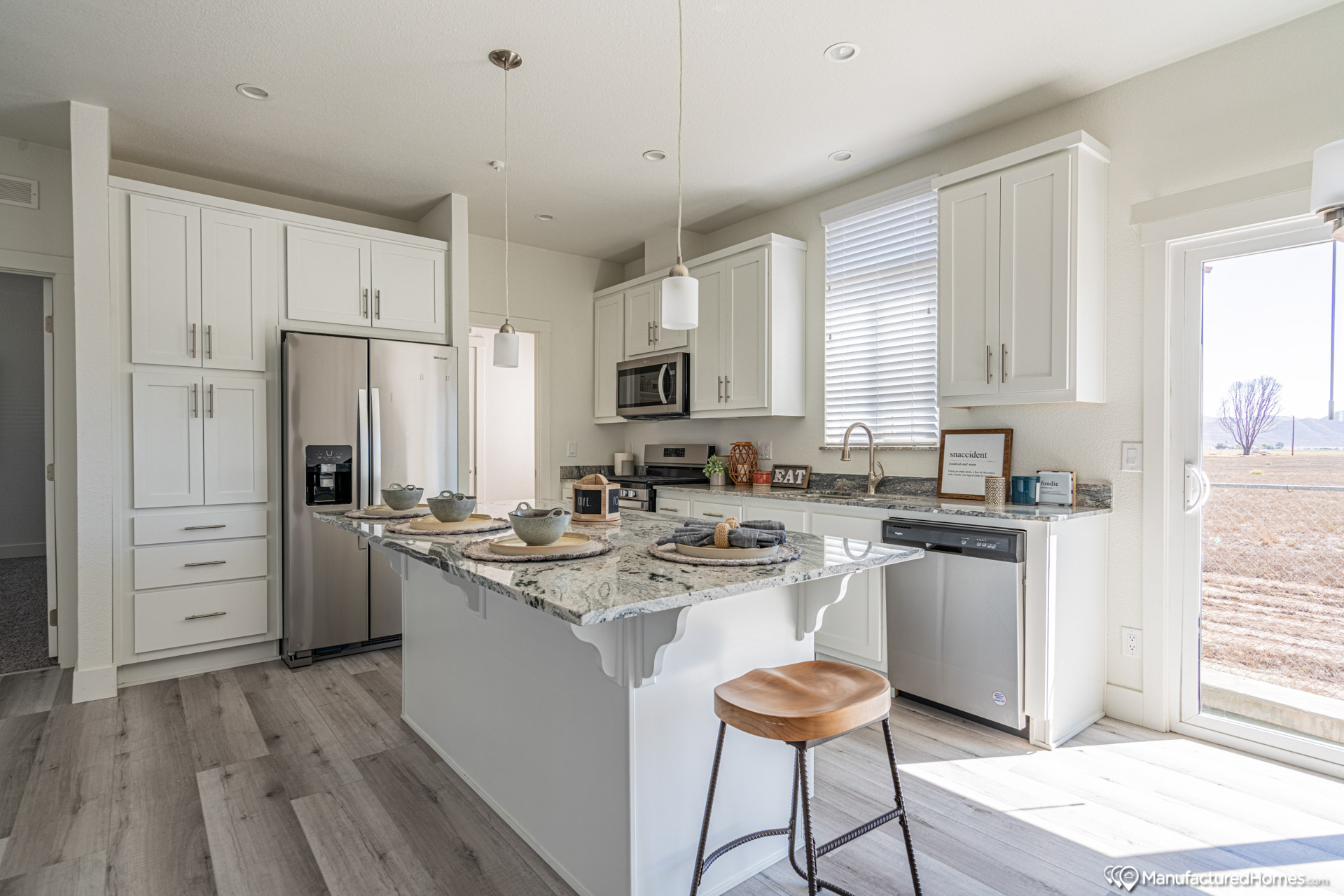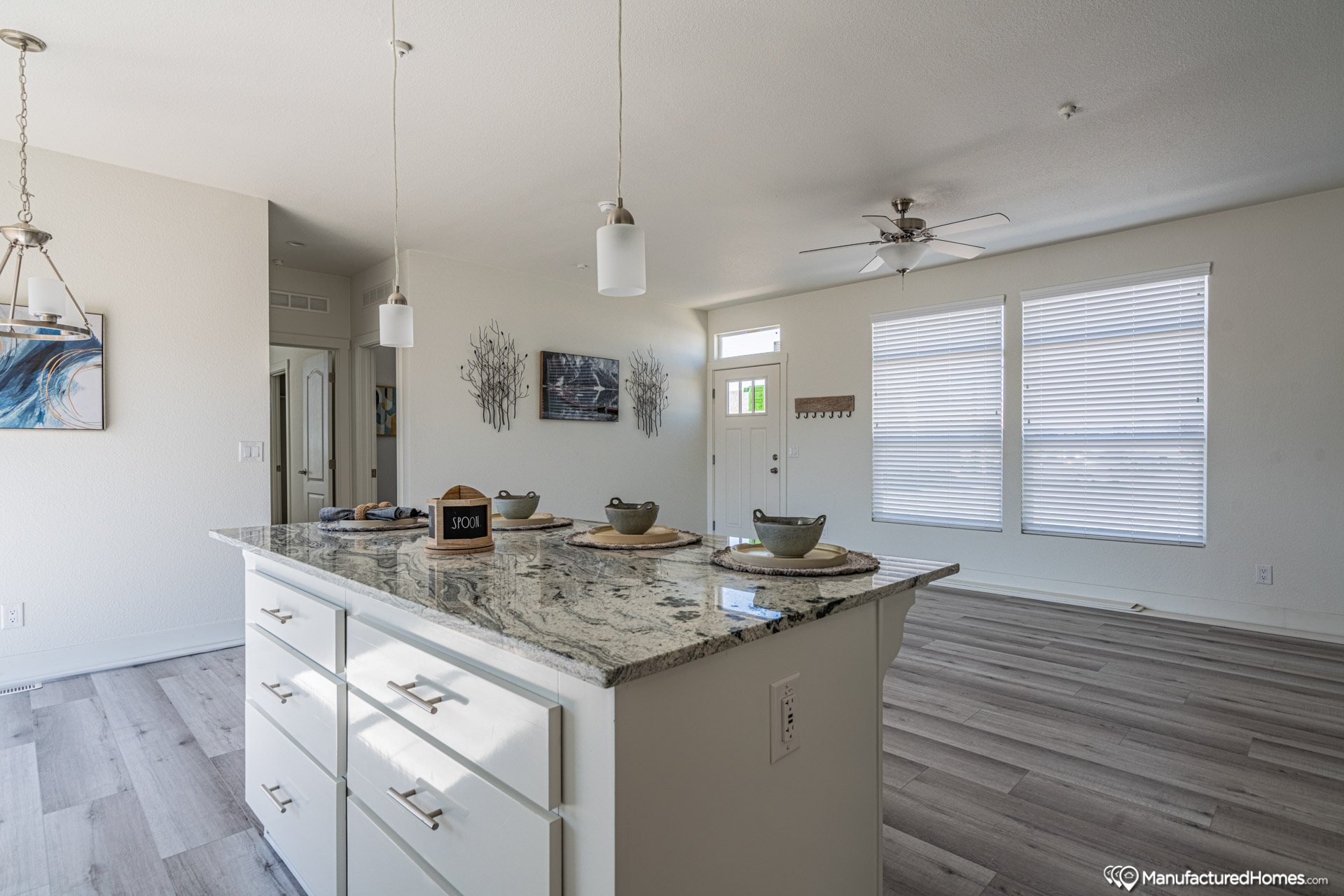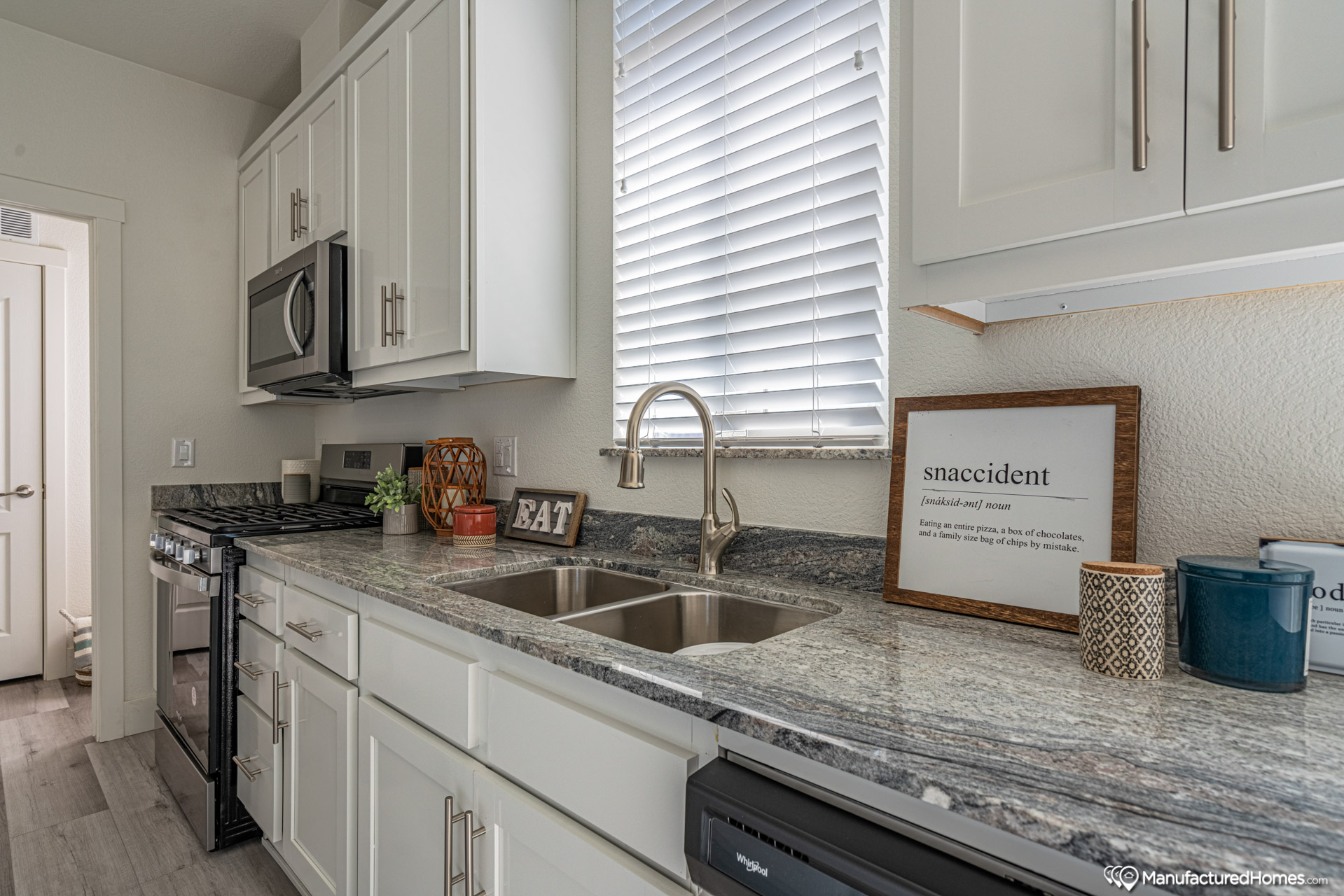 Skyline's Fun and Easy Series of homes is built to a BETTER standard spec level with granite, stainless steel appliances, tall hardwood cabinets and much much more! Pick your width and length to make any of these plans perfect for your family! The H100A model offers a split bedroom design with great open concept for your living area.