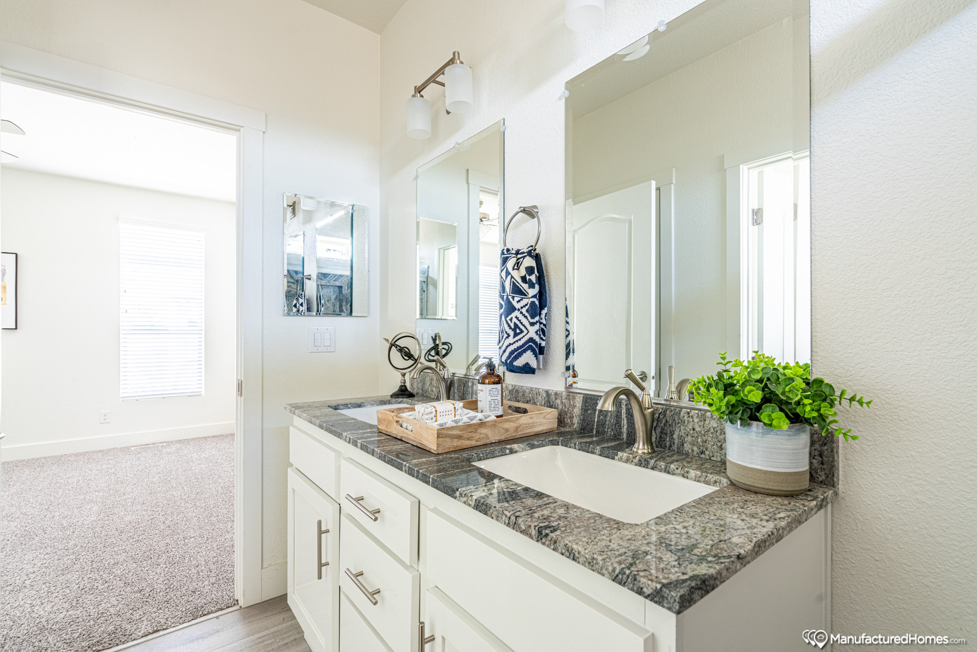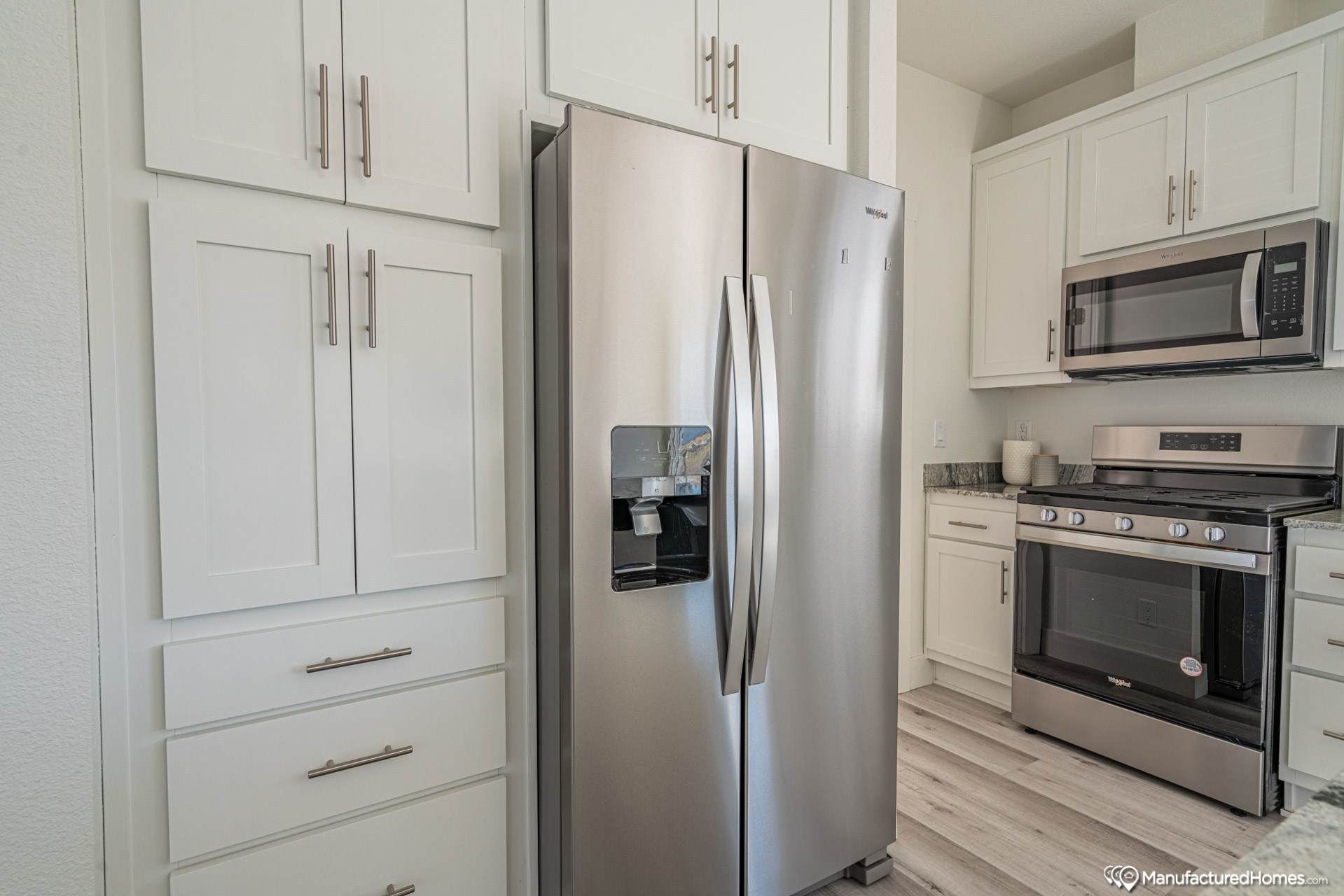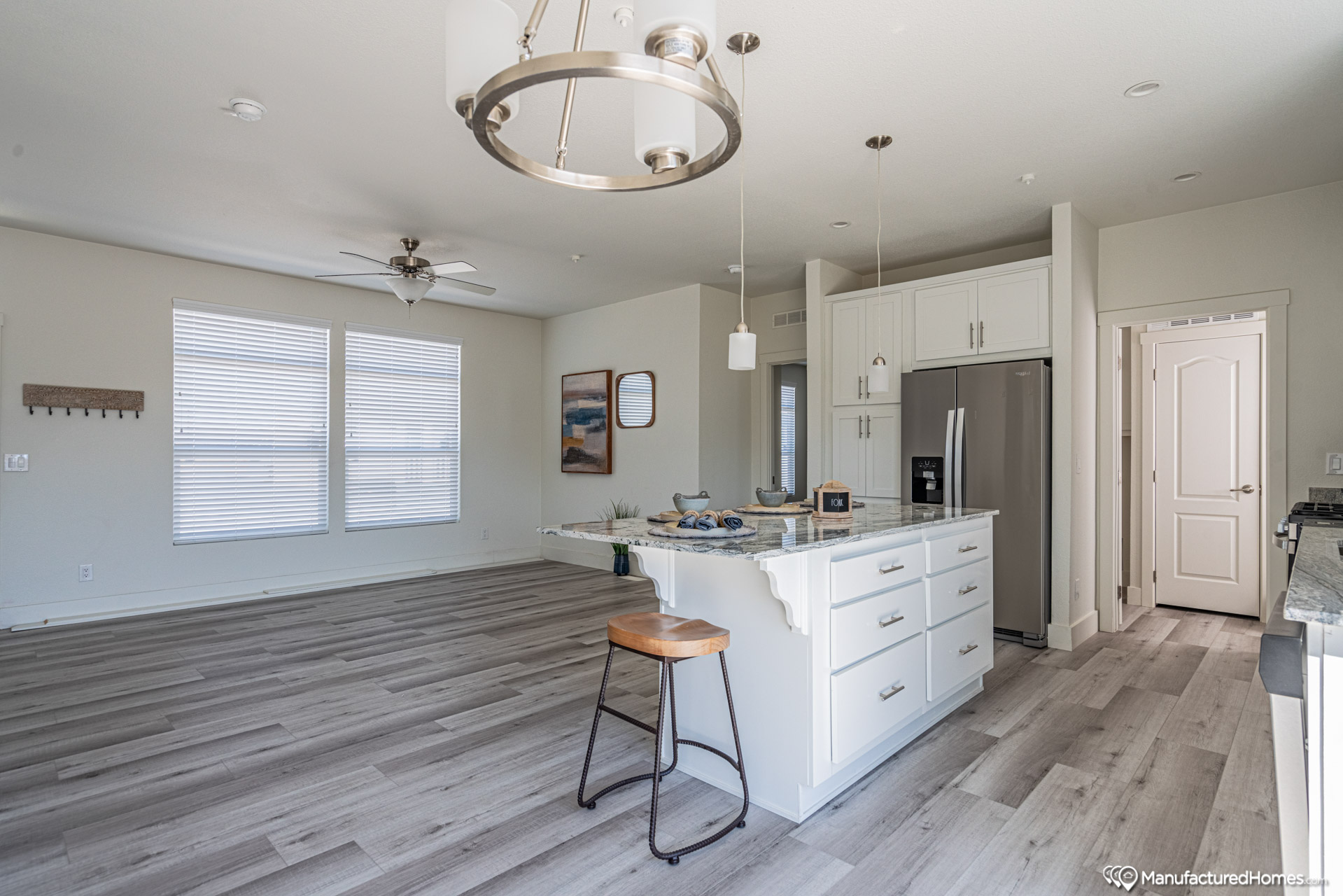 Skyline's Fun and Easy Series of homes is built to a BETTER standard spec level with granite, stainless steel appliances, tall hardwood cabinets and much much more! Pick your width and length to make any of these plans perfect for your family! The H100A model offers a split bedroom design with great open concept for your living area.