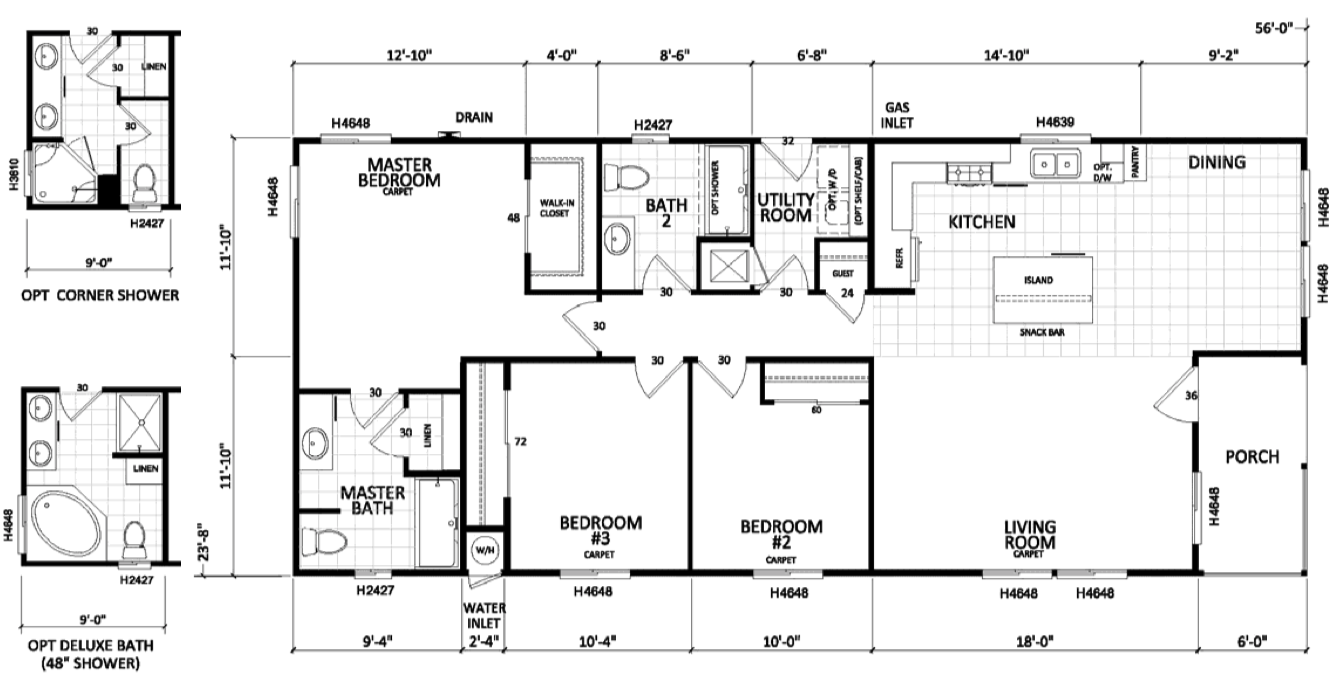 Open energy efficient floor plan with beautiful, covered porch design. This 3 bedroom 2 bath home has a large kitchen island and many optional design configurations to make this plan perfect for any property. Gorgeous drywall throughout with sculpted floor moldings and door casings. Hardwood cabinets throughout in this well built home!