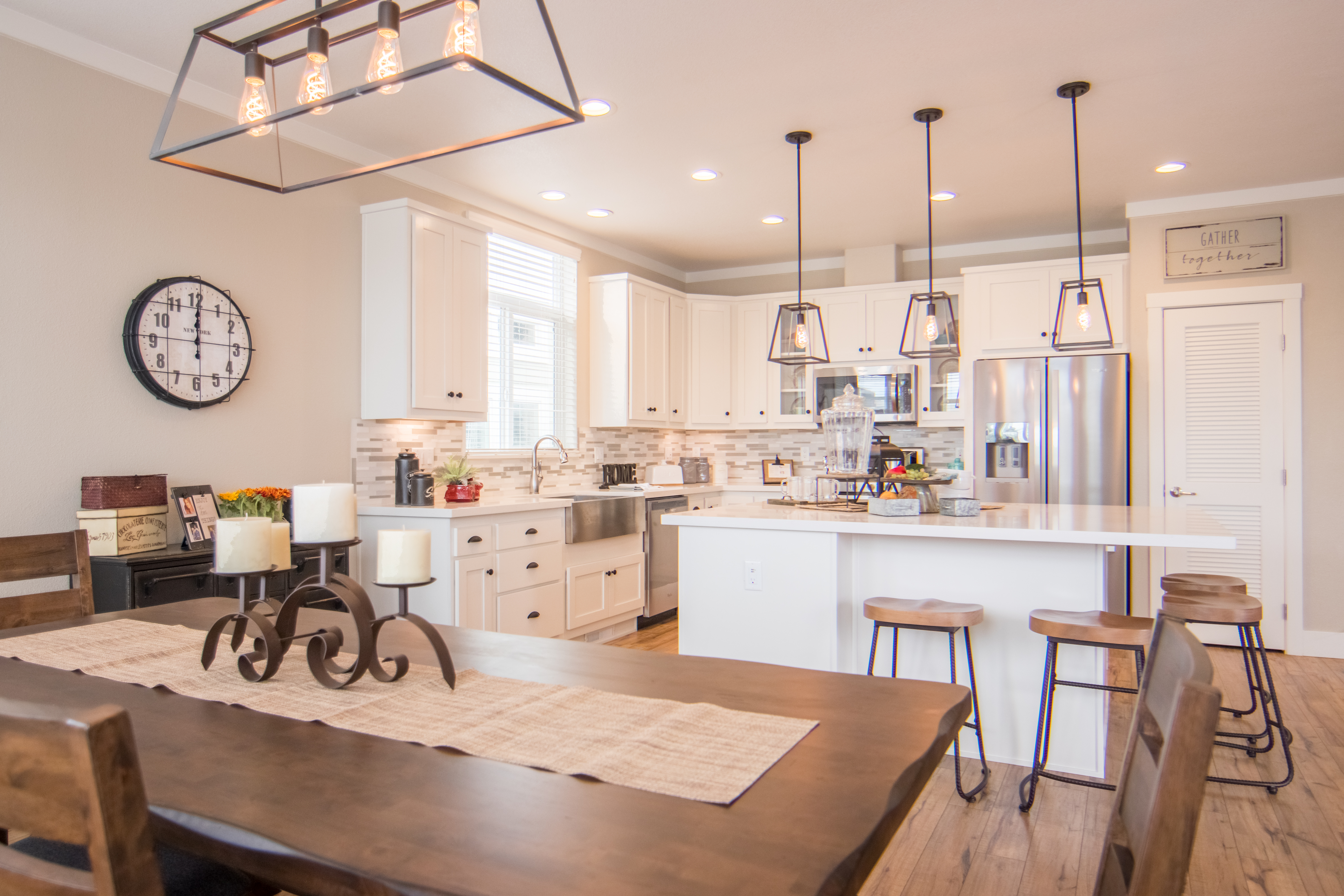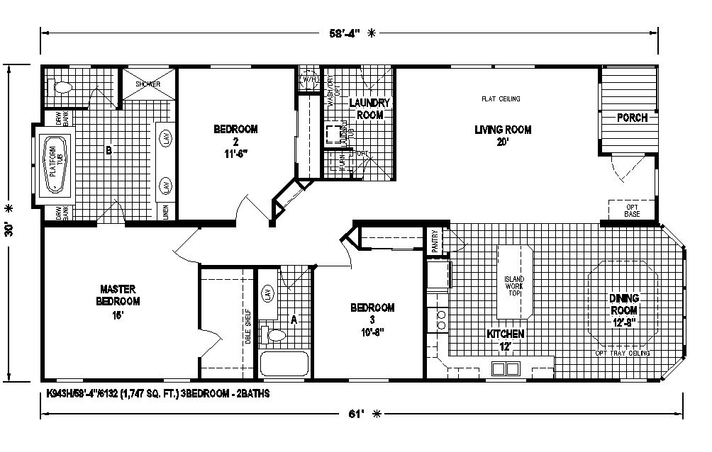 The K943H is an exquisite 1727 square foot design with a porch, three bedrooms and two-bathrooms. This plan has 9’ sidewalls and open-concept design featuring Skyline’s most modern entertaining style kitchen and a SUPERIOR master bathroom design. This home is available with several stunning optional exterior upgraded elevations. Please ask your sales agent to show you the Baypoint, Newport, Artisan and Hampton exterior elevation packages. This home offers several pre-engineered floorplan designs, including optional barn doors, an upgraded tile shower with a pony wall and bench, an optional décor wall, and a social island. This is a design belonging to the Sunset Ridge series of homes. Each plan in the Sunset Ridge series embodies open concept living and comes with 9’ sidewalls, upgraded exterior window trim, side eaves and overhangs, hardwood cabinetry with 42” overheads, crown molding at the kitchen, dining room, and hallway, choice of interior wall paint color with white ceilings, wide hallways, recessed can lights, subway tile backsplashes and much more.