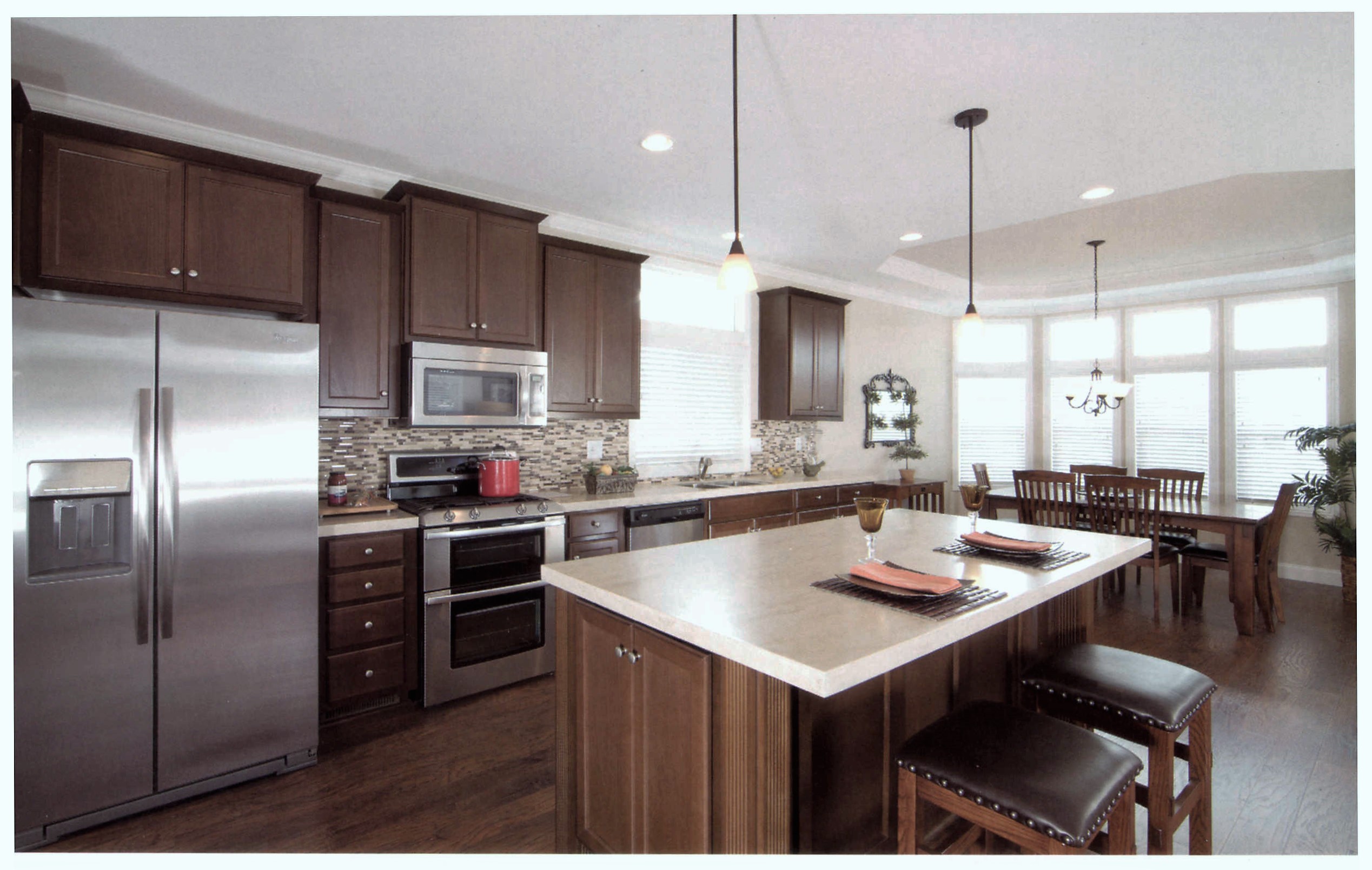 The Kingsbrook 62 is a 1487 square foot open concept plan featuring a porch, three-bedrooms, two-bathrooms, a large master suite, a laundry room and a spacious great room, kitchen and dining area. The Kingsbrook 62 has 9’ sidewalls, a beautiful bay window at the dining room and stacked windows in the great room, dining room and kitchen resulting in a bright and beautiful house. Please take a moment to take in the stunning exterior design of this gallery series home. Additionally, this home offers several pre-engineered floorplan modifications to the master bath, great room and kitchen areas. Although the home already features a seven-year Silvershield warranty, hardwood cabinetry, Corian countertops, crown molding, sculpted cased windows and baseboards, etc., you can further customize both the interior and exterior to your liking.