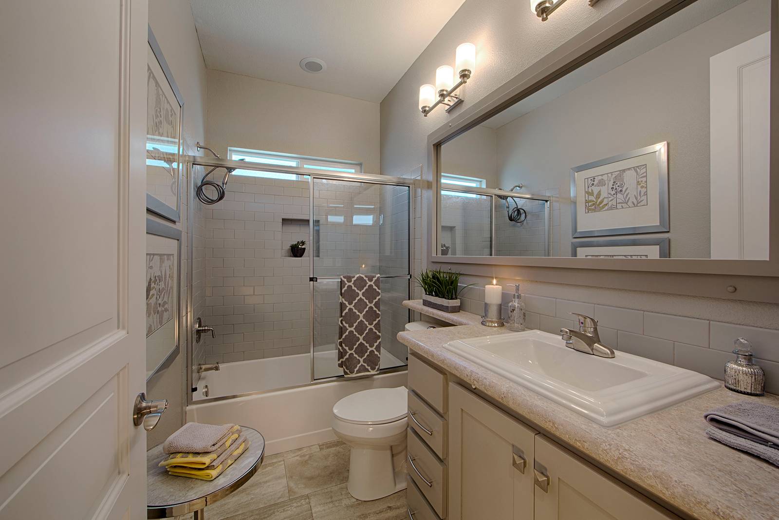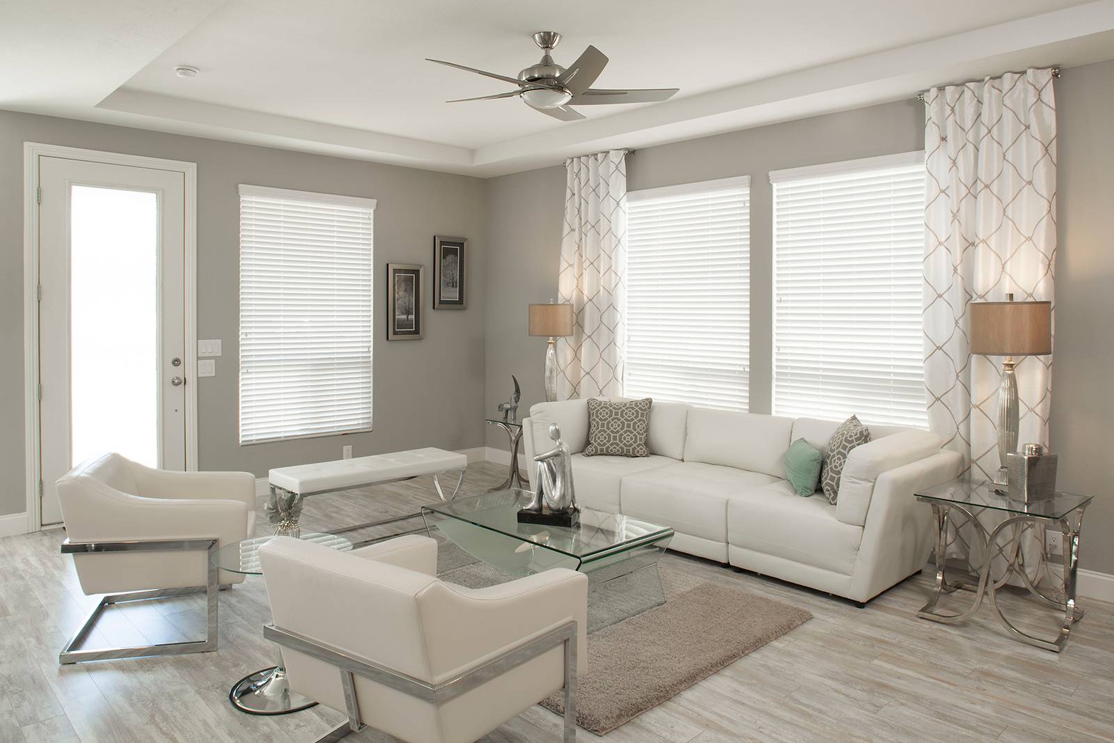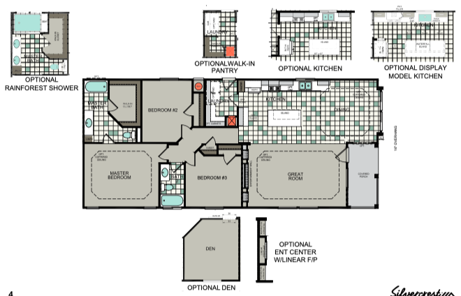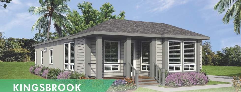 The Kingsbrook 66 is an award-winning new manufactured home design. This high performance 1561 square foot open concept plan features three-bedroom, two-bathrooms, a large master suite, a laundry room, a porch and a spacious great room, kitchen and dining area. The Kingsbrook 66 has 9’ sidewalls, with stacked windows in the great room, dining room and kitchen resulting in a well-lit, light and airy feeling. Please take a moment to take in the stunning exterior design of this contempo home. Additionally, this home offers several pre-engineered floorplan modifications to the master bath, great room laundry room, bedroom three and kitchen areas. Although the home already features a seven-year Silvershield warranty, hardwood cabinetry, Corian countertops, crown molding, sculpted cased windows and baseboards, etc., you can further customize both the interior and exterior to your liking.