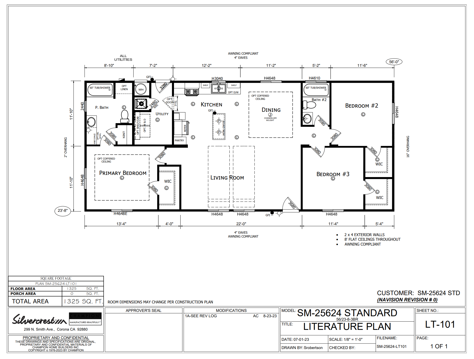 The Serenity is part of a new Summit series by Silvercrest. This home features 3 bedrooms, 2 bathrooms at 1325 square feet! The Serenity also comes in a 27' wide floorplan for people looking for a larger size home!