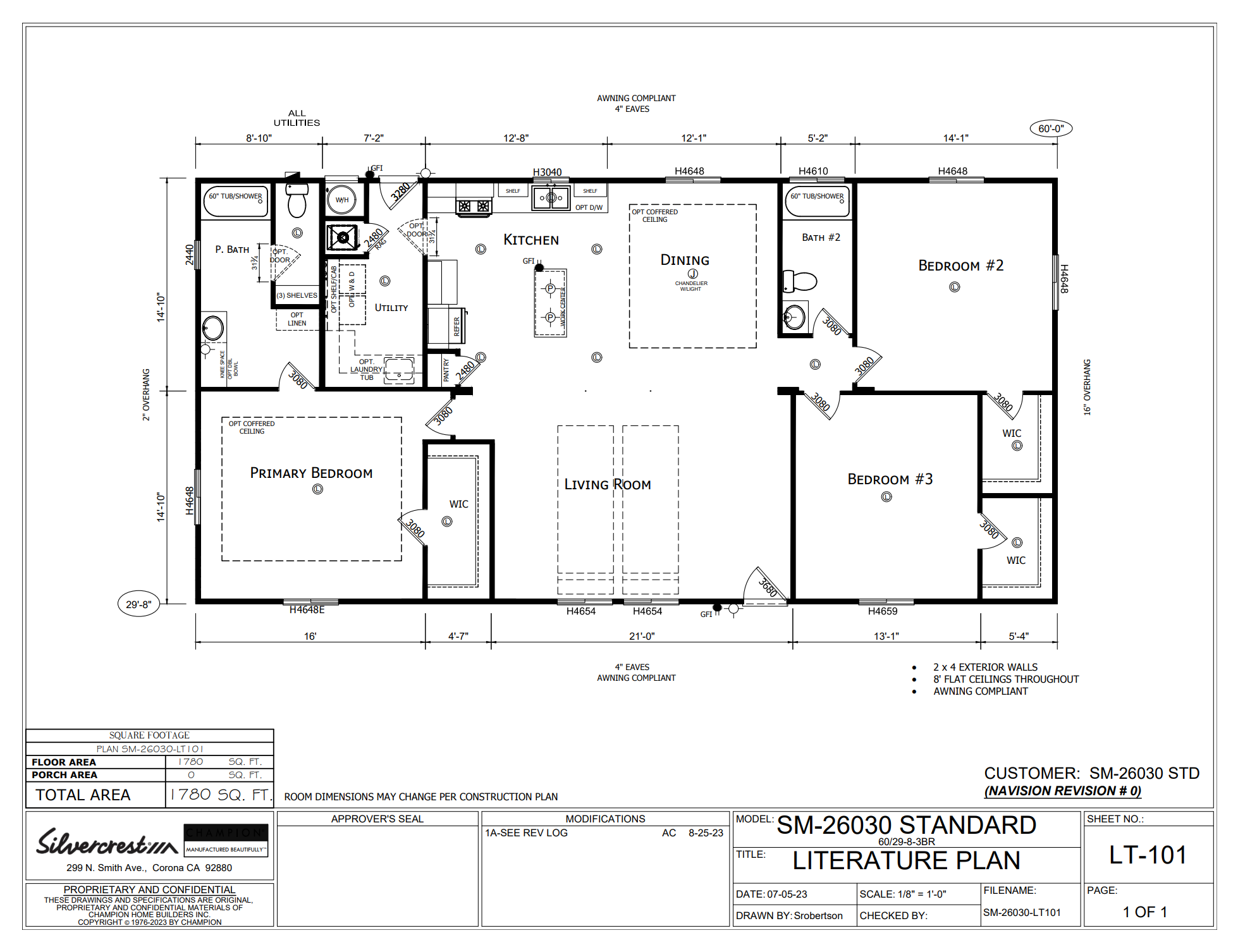 The Tranquility is a wonderful floorplan part of the new Summit series by Silvercrest! The floorplan boasts 3 bedrooms and 2 bathrooms at 1780 square feet. If this floorplan is to large for you there is also a Tranquility at 1600 square feet!